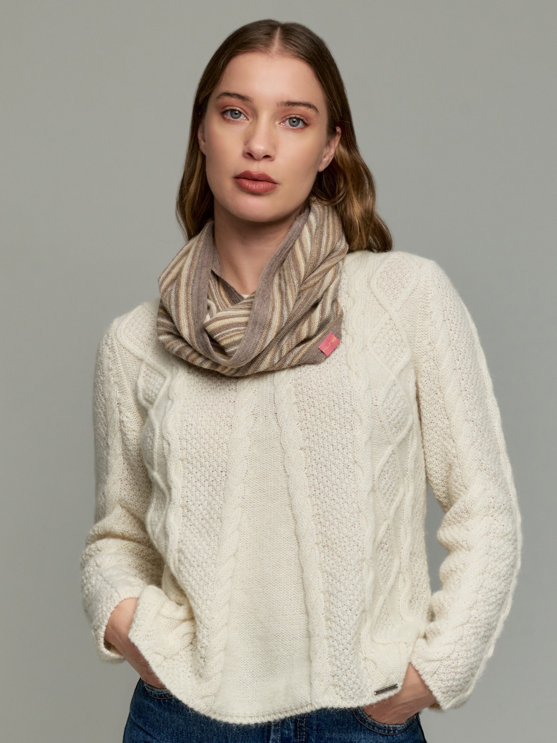 Soft and warm fine alpaca knitted loop scarf KUNA style!